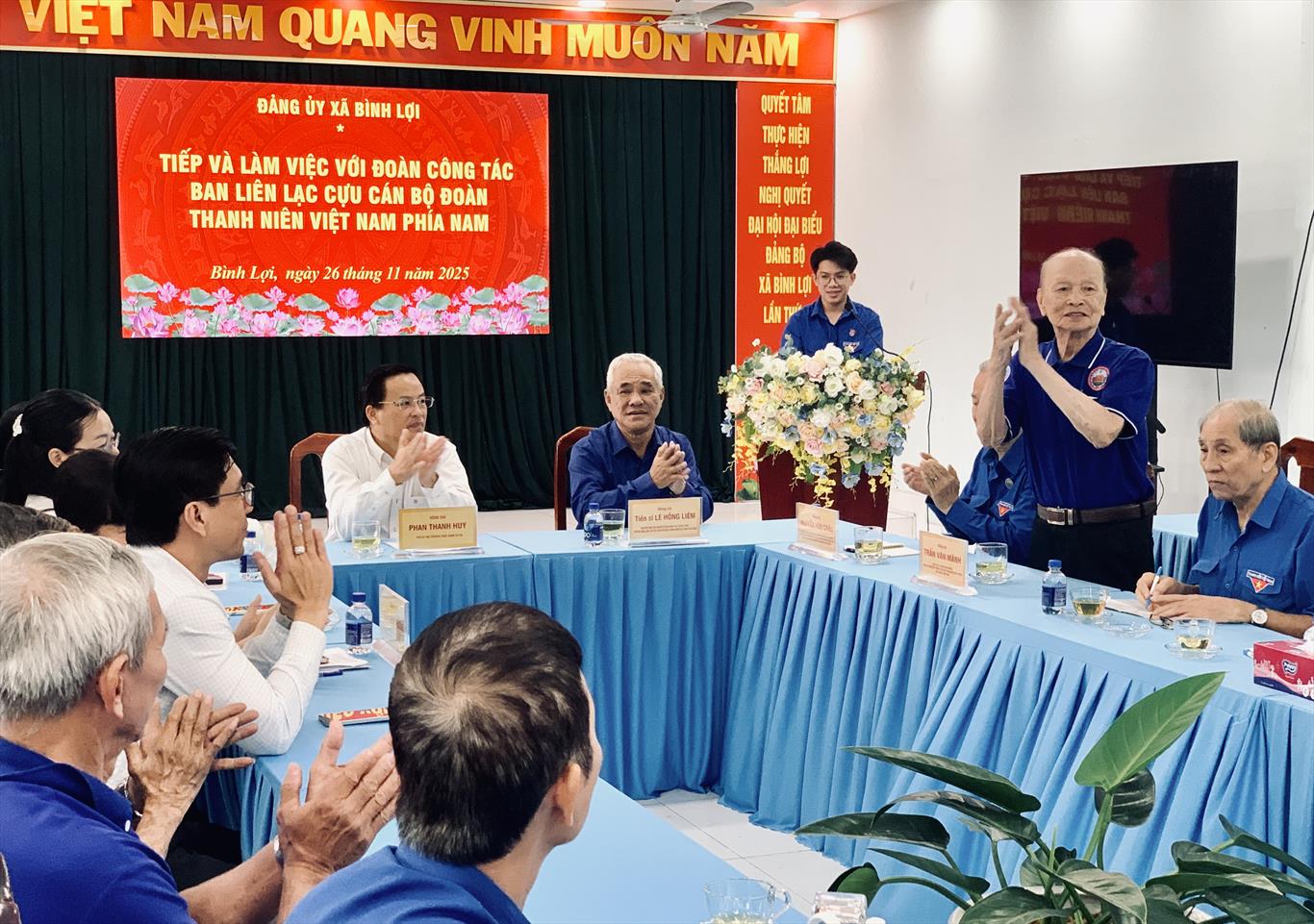 Sáng ngày 26/11 hơn 60 thành viên của Ban Liên lạc cựu cán bộ đoàn phía Nam đã trải nghiệm, du khảo đến các di tích cách mạng , công viên văn hoá và Bát bửu phật đài Thanh tâm tự trên địa bàn xã Bình Lợi . Đoàn cũng đã có buổi làm việc trao đổi kinh nghiệm sau khảo sát thực tế mô hình hoạt động mới của chính quyền cấp cơ sở trong không khí cởi mở thân tình với ban lãnh đạo xã.