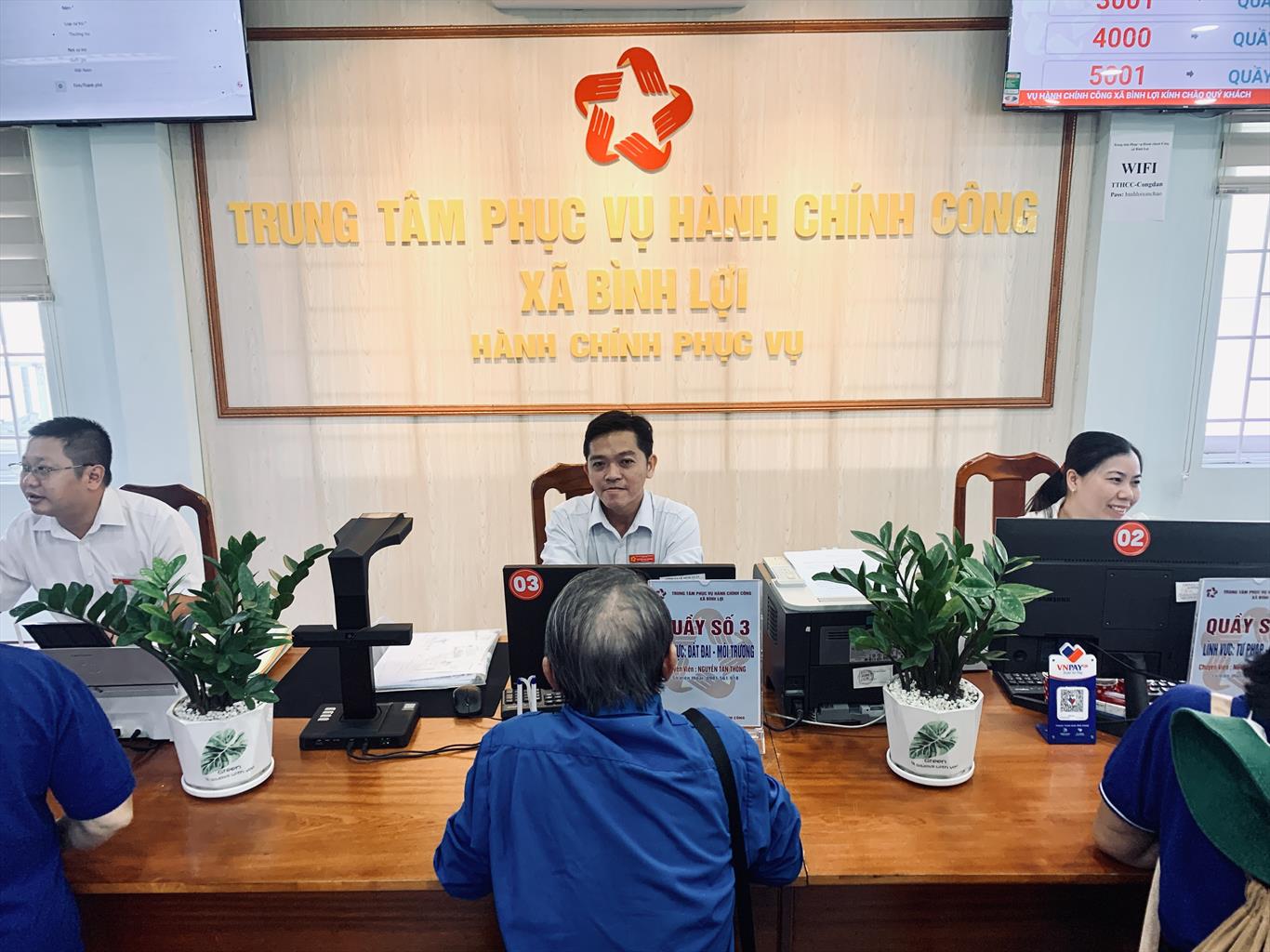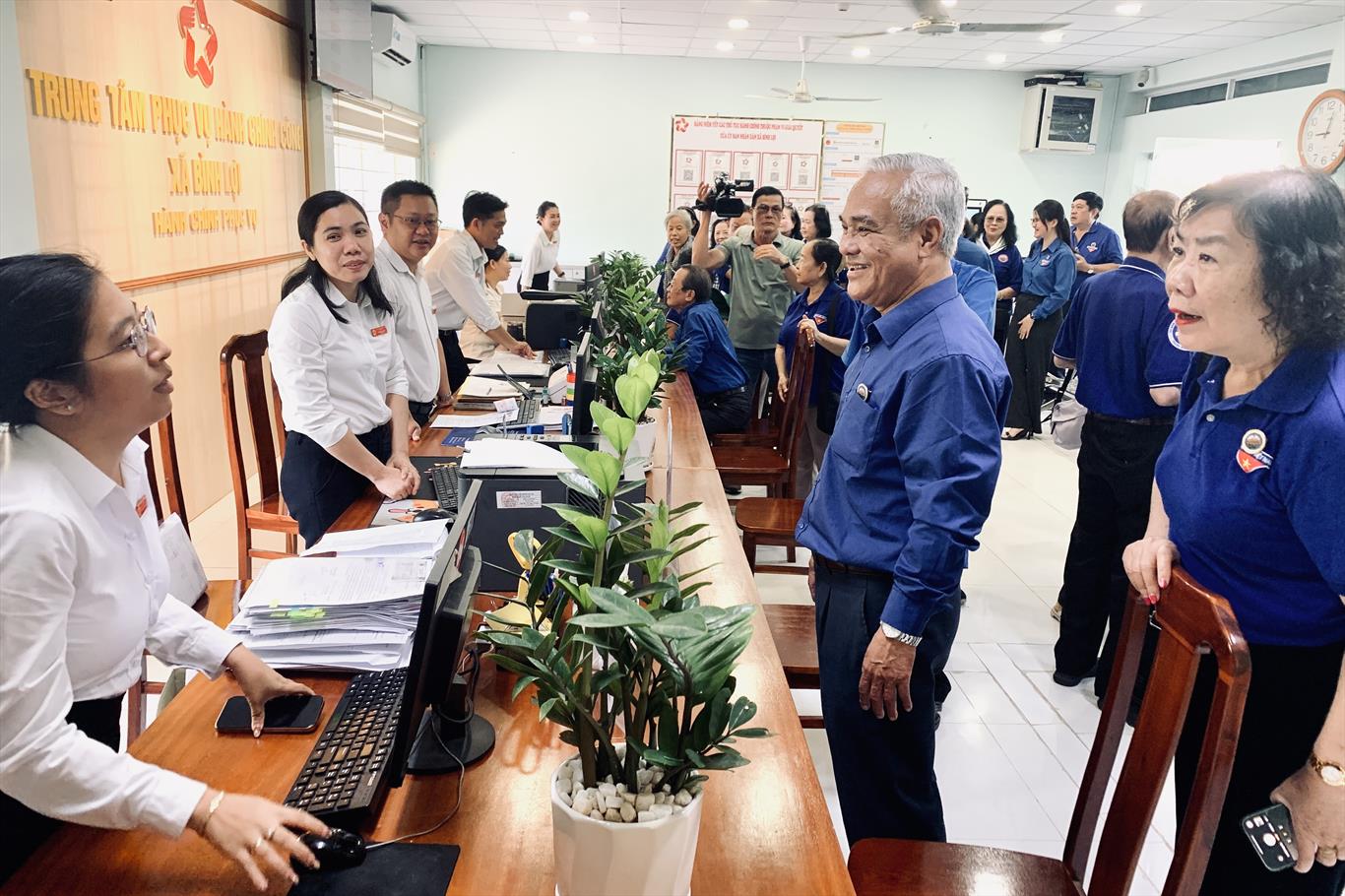 Trong buổi làm việc với đoàn, lãnh đạo xã Bình Lợi đã báo cáo nhanh tình hình địa phương sau 4 tháng vận hành chính quyền có rất nhiều đổi mới. Đc Nguyễn Thị Liêm phó bí thư, chủ tịch UBND xã cho biết: với địa bàn rộng gần 54km2 , xã nông thôn mới phát triển đô thị hoá nhanh, toàn xã có 53.000 dân, có 38 ấp. Xã có nhiều doanh nghiệp nông nghiệp, sản xuất chế biến nông sản, vận tải hàng hoá phát triển, cung ứng dịch vụ và công nhân cho các khu công nghiệp lớn, đời sống nhân dân khá ổn định. Thực hiện mô hình chính quyền 2 cấp từ tháng 7/2025 đến nay, xã đã nỗ lực rất lớn để ổn định bộ máy mới, nhất là đưa vào hoạt động Trung tâm phục vụ hành chính công, đảm bảo tiếp nhận giải quyết tất cả các thủ tục hành chính cho người dân trên môi trường điện tử. Đến nay trung tâm này đã tiếp nhận 6934 hồ sơ và xử lý trên môi trường mạng toàn trình tại cổng Dịch vụ công quốc gia, kết quả giải quyết đạt 99,38% hồ sơ đạt . Xã Bình Lợi được TP thường xuyên đánh giá, xếp hạng phục vụ hành chánh công số hoá xã luôn đạt từ hạng 15 đến hạng 33 trong tổng số 168 xã phường toàn thành. Tuy còn khó khăn, thiếu nhân viên chuyên môn, và trang thiết bị tin học cho công tác số hoá nhưng xã vẫn cố gắng hình thành các tổ công nghệ số, đến từng ấp, hỗ trợ thường xuyên cho nhân dân thao tác các qui trình như ứng dụng VneID, các App tiện ích , làm thủ tục hành chính qua mạng ngày càng thành thạo hơn .