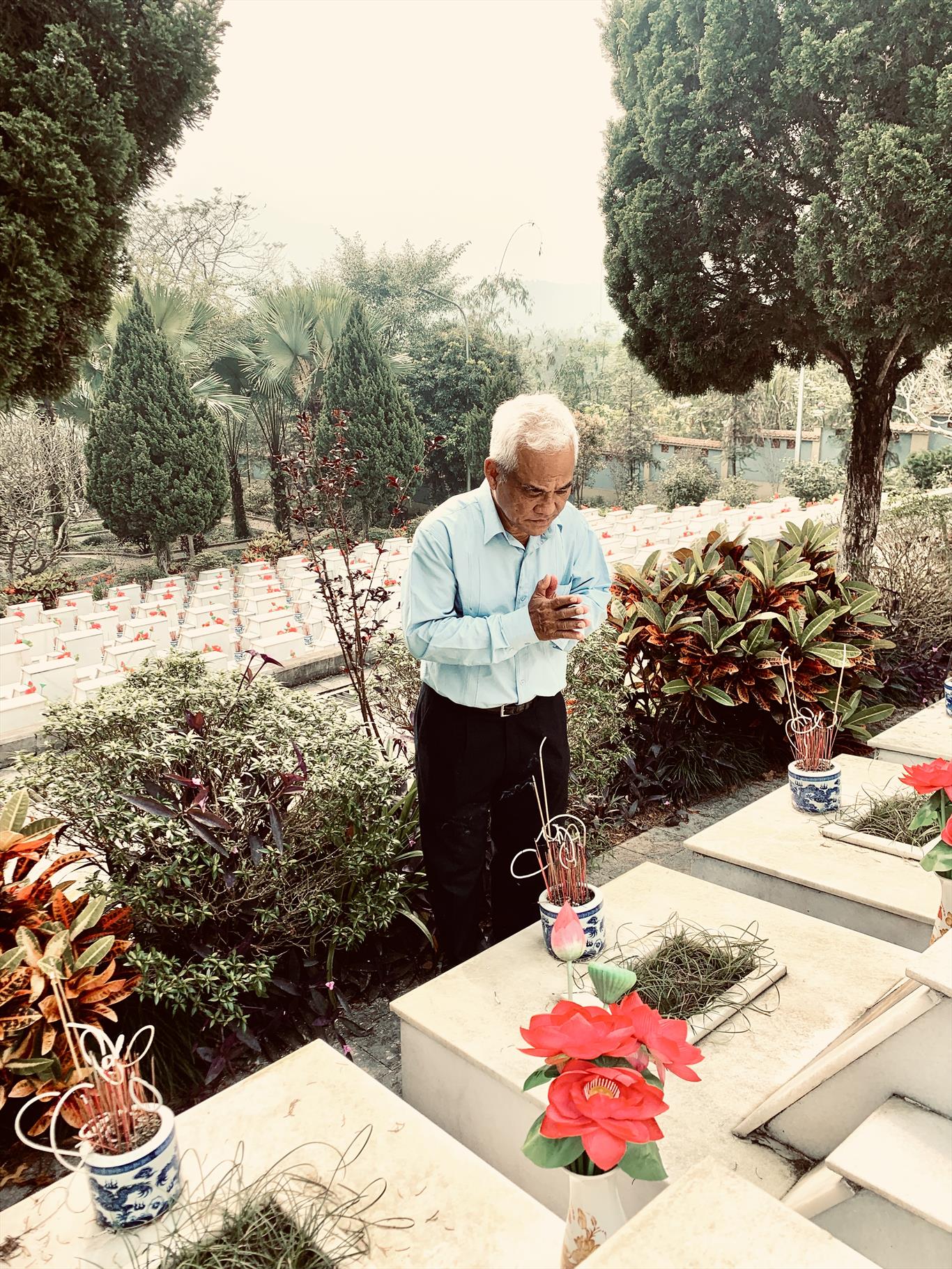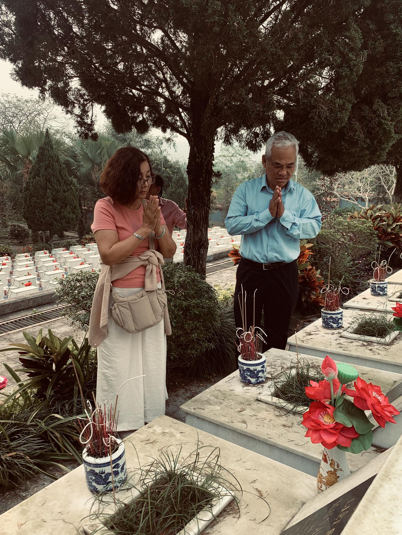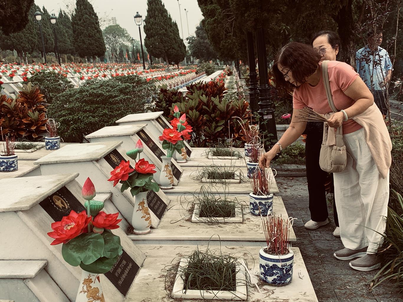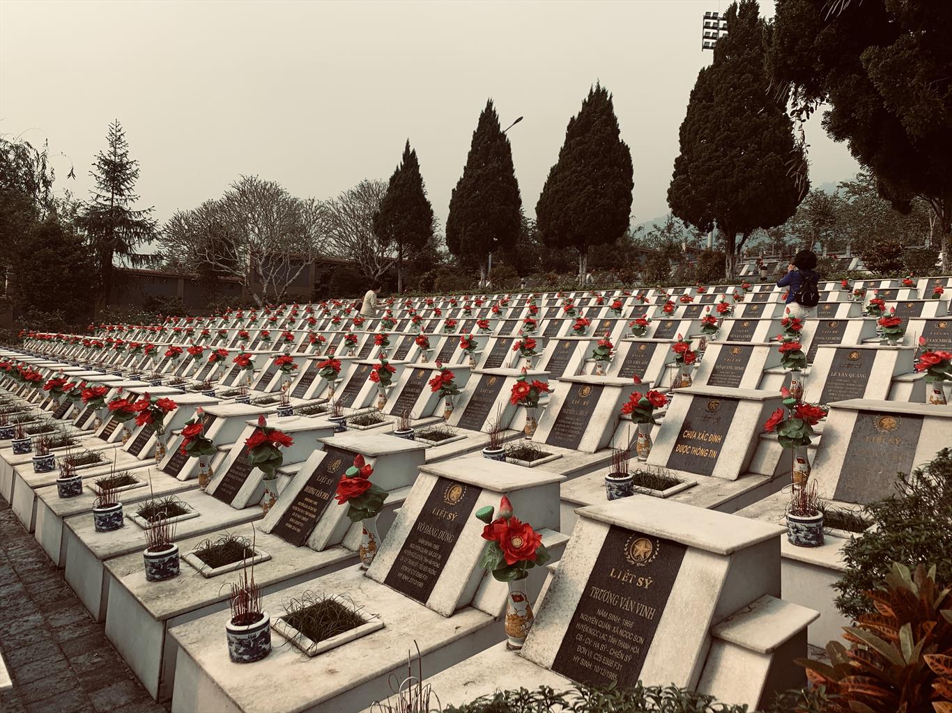 Trước mắt chúng tôi là hơn bốn nghìn ngôi mộ trắng, thẳng hàng, im lặng mà kiêu hãnh. Mỗi tấm bia như một câu chuyện còn dang dở. Những cái tên, những năm sinh — có người còn chưa tròn đôi mươi — khiến tim người viếng thắt lại.