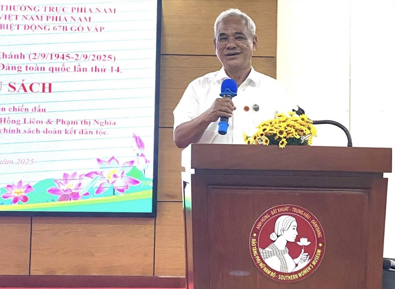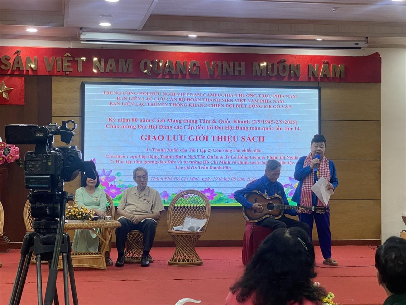 Kỷ niệm 80 năm Cách Mạng tháng Tám & Quốc Khánh (2/9/1945-2/9/2025), Chào mừng Đại Hội Đảng các cấp tiến tới Đại Hội Đảng toàn quốc lần thứ 14 , Trung ương Hội Hữu Nghị Việt Nam Campuchia kết hợp cùng Thường trực phía Nam & Ban Liên Lạc Cựu Cán Bộ Đoàn thanh Niên Việt Nam Phía Nam, Ban Liên Lạc truyền thống kháng chiến Đội Biệt Động 67B Gò Vấp vừa tổ chức Giao lưu giới thiệu Sách : 1/- “Thanh Xuân của Tôi” (tập 2)- “Còn sống còn chiến đấu”. Tác giả, Chủ biên : Đc Ngô Tấn Quân , Cựu chiến sỹ biệt động Thành đoàn, cựu tù Côn Đảo, Ts Lê Hồng Liêm & Phạm thị Nghĩa . Quyển thứ 2: “Học tập tấm gương đạo đức và tư tưởng Hồ Chí Minh về chính sách đoàn kết dân tộc” của Tác giả: Ts Trần Thanh Pôn . Buổi giao lưu diễn ra trong không khí vui tươi đầm ấm, trang trọng tại Bảo tàng Phụ Nữ Nam bộ sáng ngày 19/8/2025.