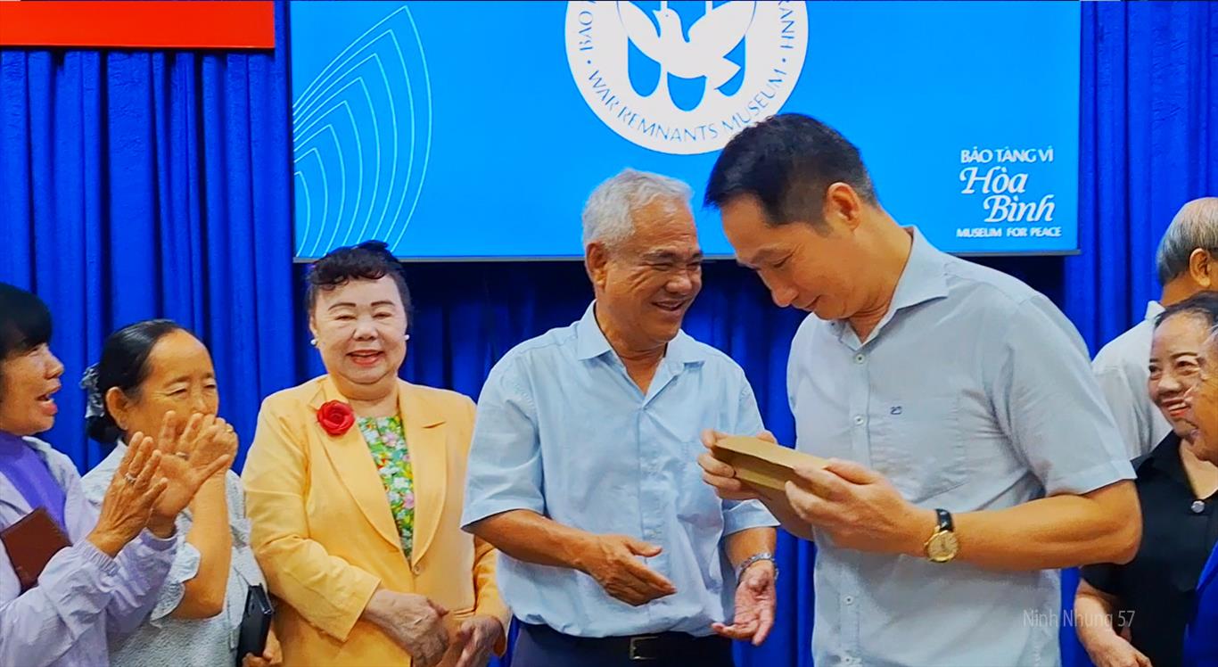 Kết thúc chương trình, Ban Liên lạc cựu cán bộ Đoàn và Bảo tàng Chứng tích Chiến tranh đã trao tặng quà lưu niệm, và toàn thể thành viên cùng hòa chung những ca khúc tập thể, tạo nên không khí ấm áp, gắn kết.